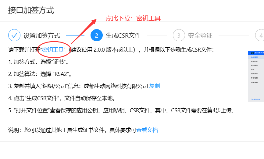 点击上图中的【下一步】按钮,弹出的页中下载【密钥工具】,如下图:
