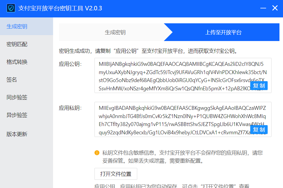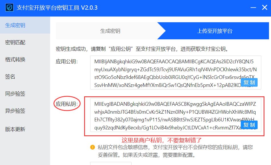 【商户私钥】在密钥生成工具中复制【应用私钥】的代码,如下图: