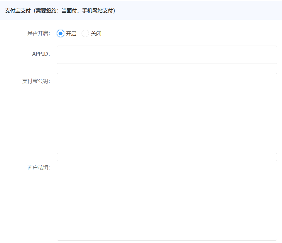 进入您网站的后台支付宝支付插件管理界面,如下图: