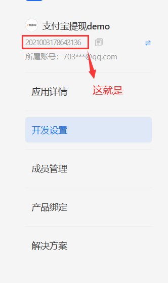 这里把对应的参数填写好,第一项APPID,在支付宝开发者平台,创建的应用详情页中复制,如图: